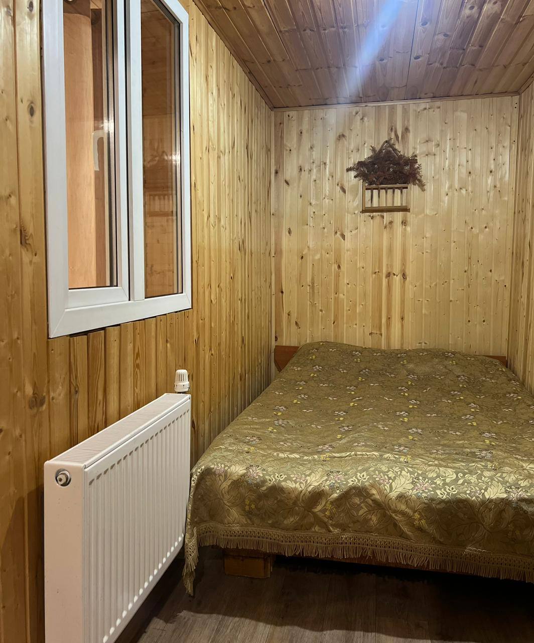 Большой дом с 3 спальнями, на 10 человек . В двух спальнях по 4 спальных места (1 двухспальная кровать и 2 односпальные), а в третьей маленькой спальне, кровать для одного. Дом очень теплый, отопление централизованное паровое. Есть кухонная зона с четырехкамфорной газовой плитой, посуда, холодильник, ТВ, скоростной wi-fi, душ, санузел, своя мангальная зона.